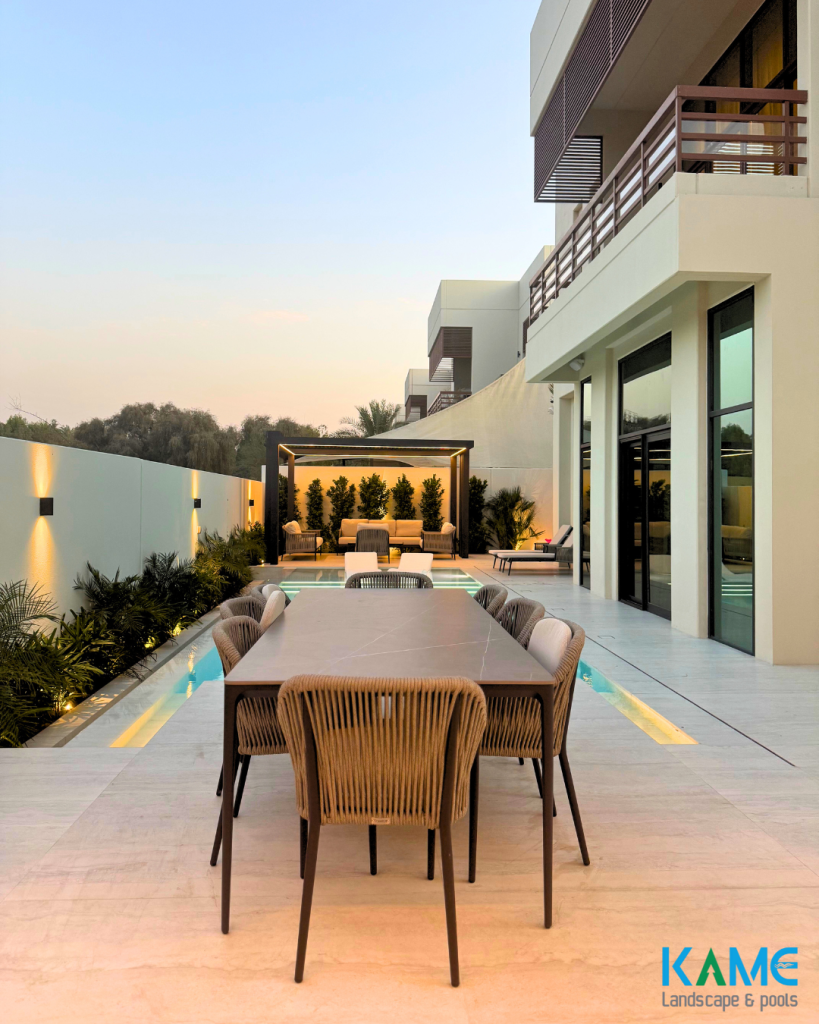 - Villa Landscaping with Water Features: Pools, Fountains, and Streams in Dubai Gardens
